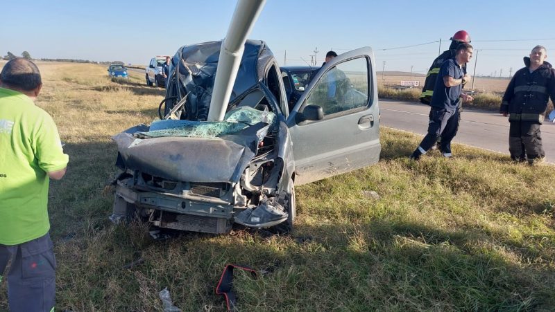 Un vehículo chocó contra una columna de alumbrado en la ruta 3, a unos 300 metros del puente naranja, entre Bahía Blanca y Punta Alta.