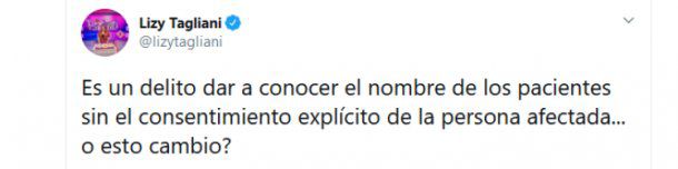 Tagliani respondió un tuit que daba cuenta del cruce de Pampita y Magaldi y aseguró que “es un delito dar a conocer el nombre de los pacientes sin el consentimiento explícito de la persona afectada… ¿o esto cambió?”.