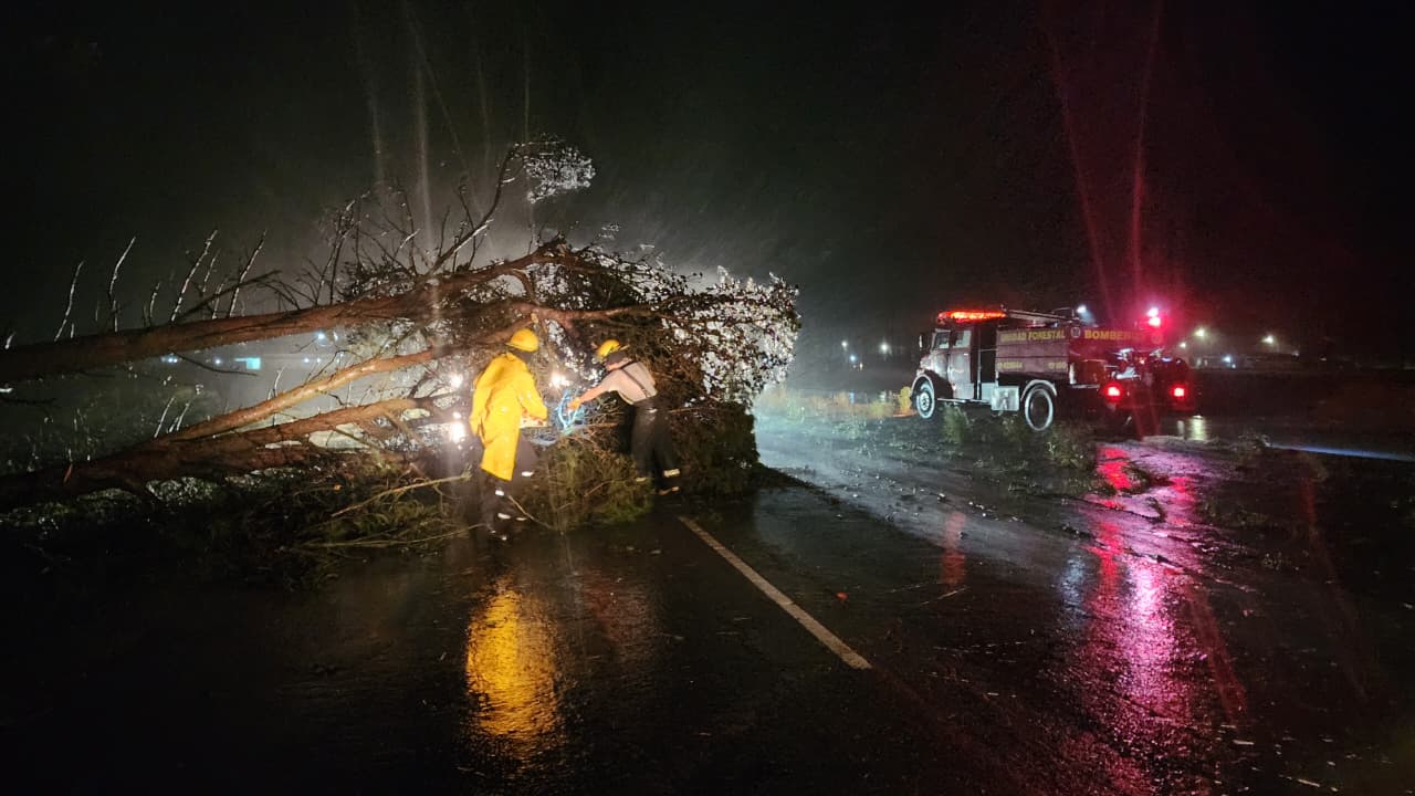 Uno de los incidentes más relevantes ocurrió sobre la Ruta Provincial N°1, frente al Parque Apícola, donde un árbol de grandes dimensiones se desplomó sobre la calzada, interrumpiendo por completo la circulación.