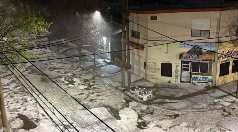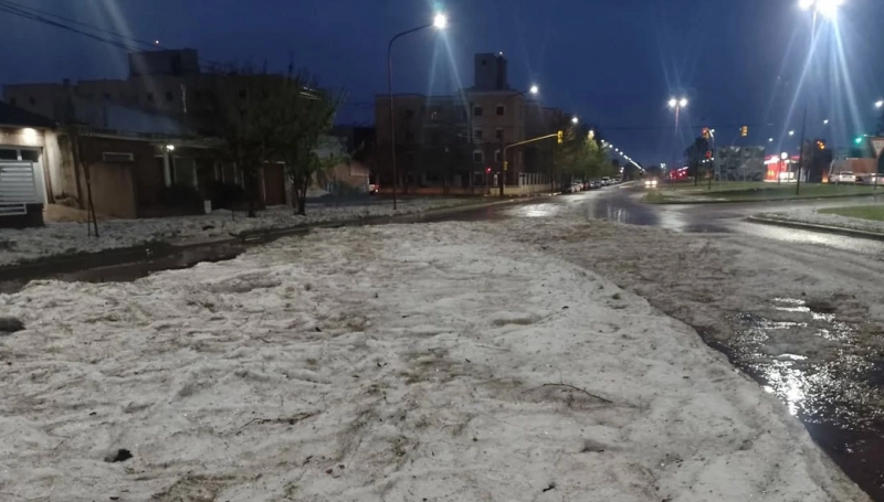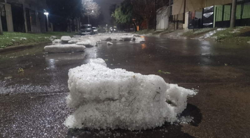 Las calles amanecieron cubiertas con los restos de granizo. El fenómeno fue avisado por el Servicio Meteorológico Nacional y es de suma gravedad.