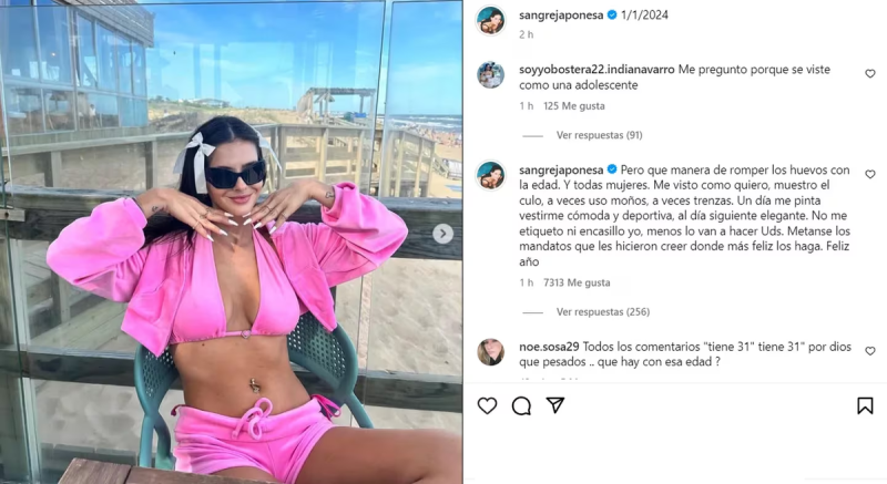 Luego, dejó en claro que no necesita la aprobación de nadie. “Me visto como quiero, muestro el culo, a veces uso moños, a veces trenzas. Un día me pinta vestirme cómoda y deportiva, al día siguiente elegante. No me etiqueto ni encasillo yo, menos lo van a hacer ustedes. Métanse los mandatos que les hicieron creer donde más feliz los haga. Feliz año”, agregó de forma contundente.