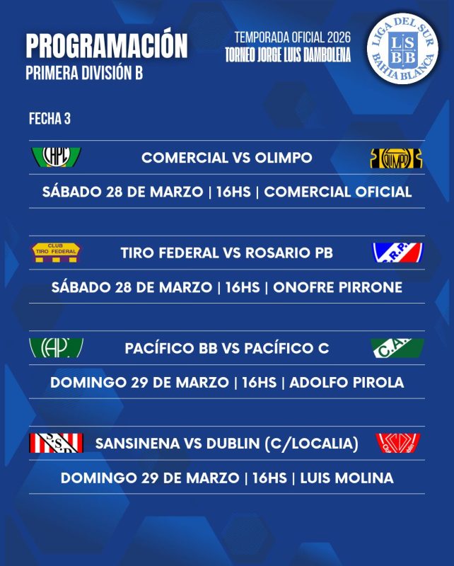 La Liga del Sur detalló cómo se disputará la fecha 3 del Torneo Apertura Jorge Luis Dambolena de Primera División.