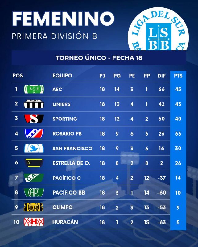 Se disputó la Fecha 18 del Torneo de Primera A y Primera B del fútbol femenino que organiza la Liga del Sur.