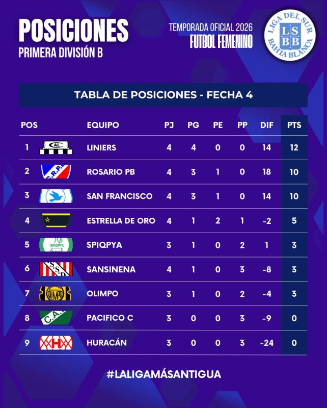 Pacífico (C) 0 – Liniers 4 (Liz Marcolini, Isabela Pezzutti, Lucía Julián y Lola Podestá)