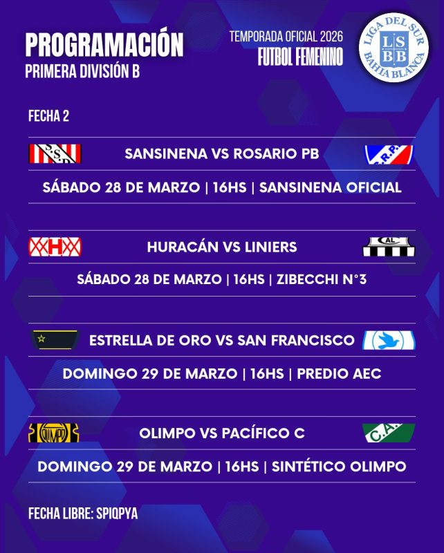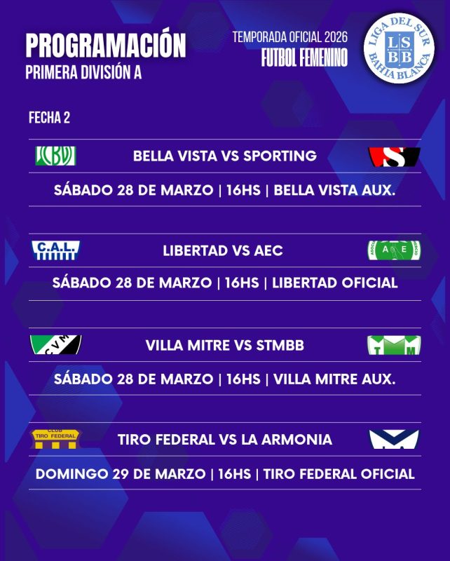 La Liga del Sur confirmó la programación de la fecha 2 del Torneo Apertura en las categorías Primera A y Primera B.