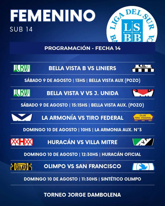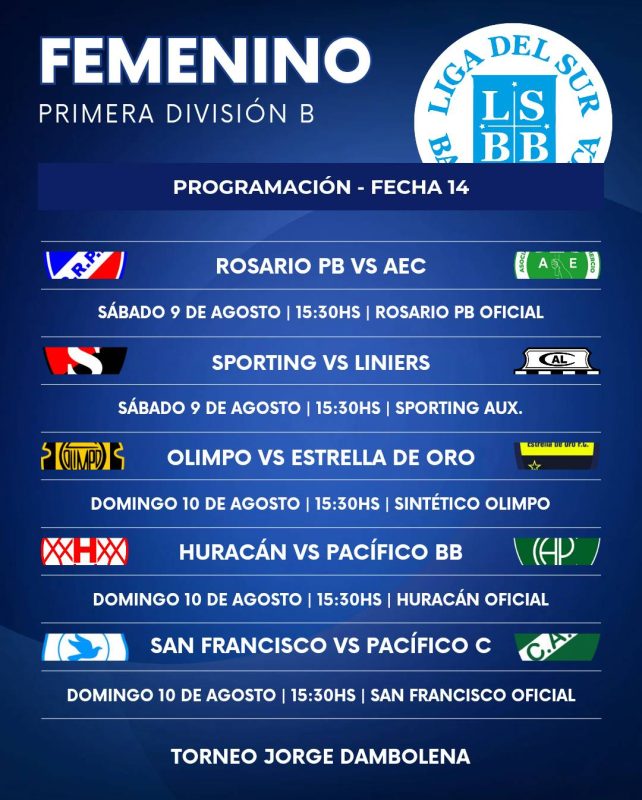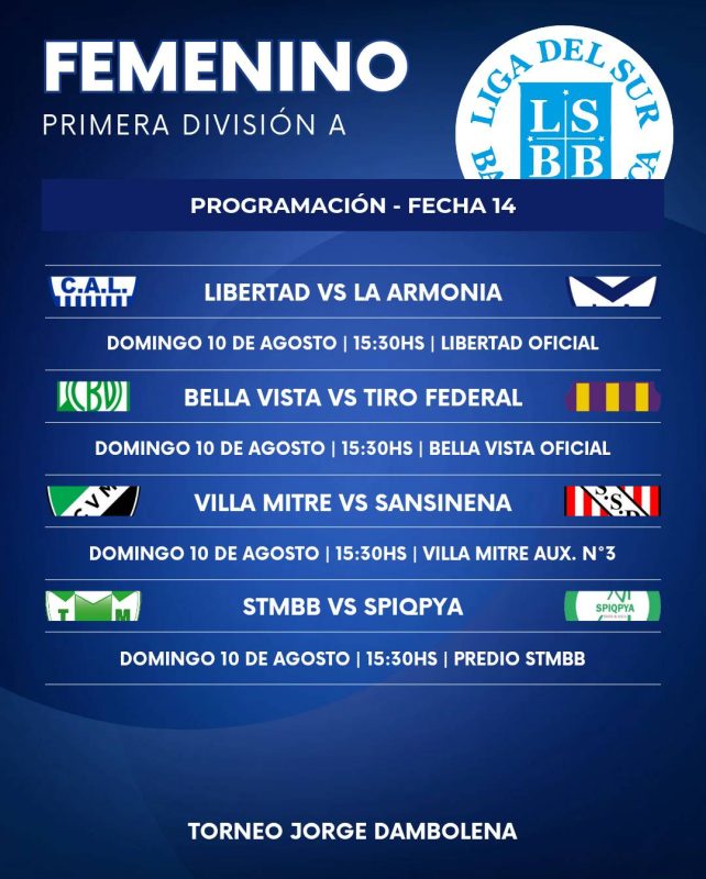 Este fin de semana se disputará la fecha 14 del Torneo Único de Primera A y Primera B del fútbol femenino de la Liga del Sur.