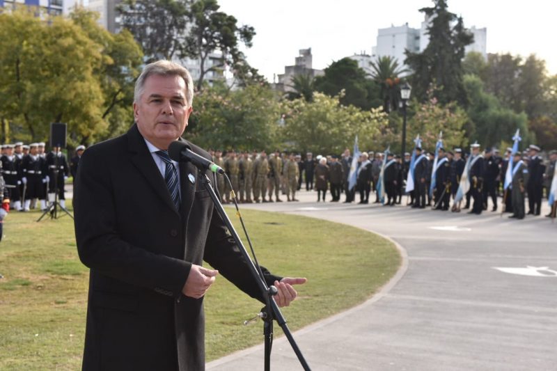 La ceremonia tuvo lugar en la Plaza Rivadavia, y contó con la participación de legisladores, representantes de fuerzas militares y de seguridad, funcionarios, concejales, referentes de instituciones y organismos, veteranos de la Guerra de Malvinas y vecinos de la comunidad.