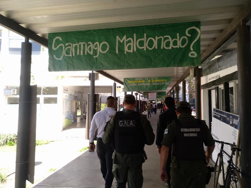 Sin orden judicial, efectivos de Gendarmería ingresaron a la Universidad de Rosario cuando los estudiantes y profesores realizaban un acto para reclamar la aparición con vida de Santiago Maldonado, el joven que se encuentra desaparecido desde el 1 de agosto cuando participaba de una protesta mapuche en Chubut.