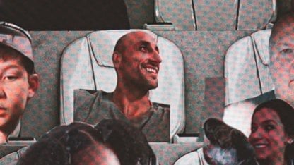A través del sistema que instaló la liga, Emanuel Ginóbili apareció en las pantallas gigantes que están ubicadas alrededor de toda la cancha. “Encontramos una cara familiar“, escribió la franquicia en sus redes sociales.
