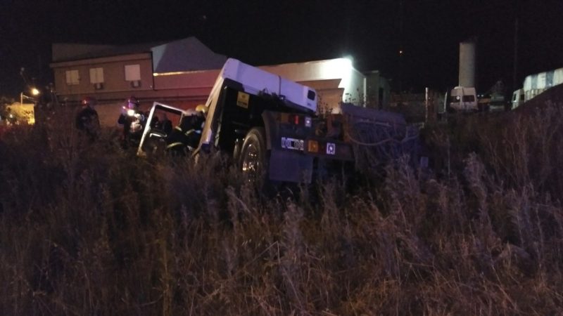 En tanto, el camionero también sufrió heridas ya que terminó incrustado en una zanja.