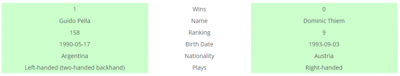 Mañana, Pella enfrentará al primer pre clasificado de la competencia,  el austríaco Dominic Thiem, al que se enfrentó en solo una oportunidad y salió victorioso, el año pasado en Rio de Janeiro.