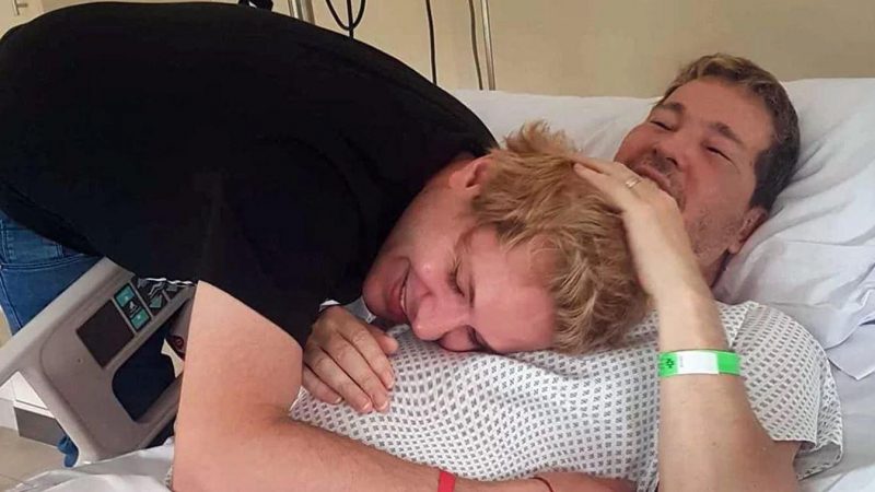 Ayer, su esposo fue a visitarlo y le llevó una artesanía con los nombres de los dos y un corazón. Esto le devolvió la alegría al hermano de Silvia Süller y se llenó de energía. “Les juro que se me fue la fiebre. Lloro. Es la medicina que necesitaba. Esto es emocional, estoy seguro, por eso a los médicos les cuesta tanto dar con el diagnóstico“, comentó junto a la dulce postal donde se los ve en un momento muy cariñoso.