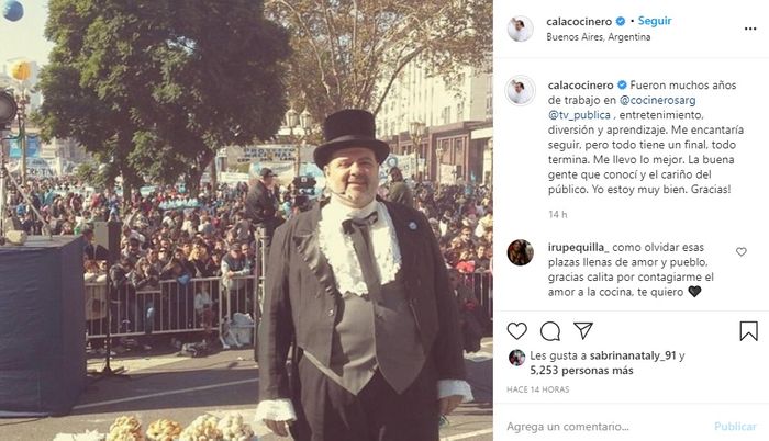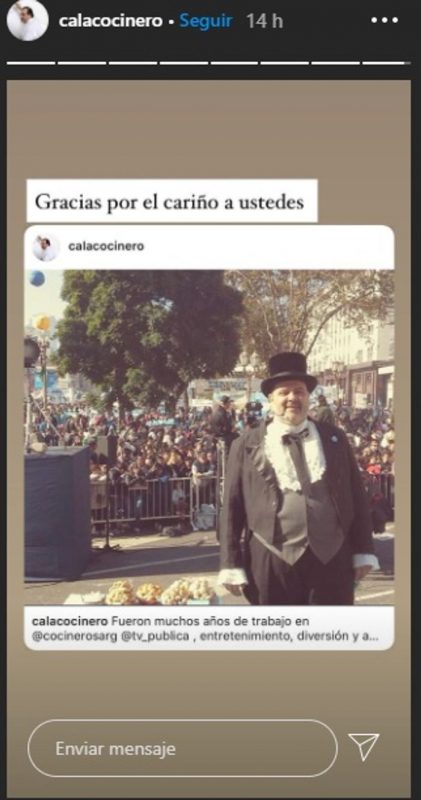 “Fueron muchos años de trabajo en @cocinerosarg @tv_publica , entretenimiento, diversión y aprendizaje“, indicó Calabrese.