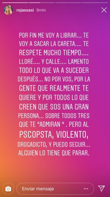 En esas historias que fueron publicadas anoche, se anticipaba una denuncia en la que le sacaría “la careta” a un hombre a quien tildaba de “psicópata, violento y drogadicto“.