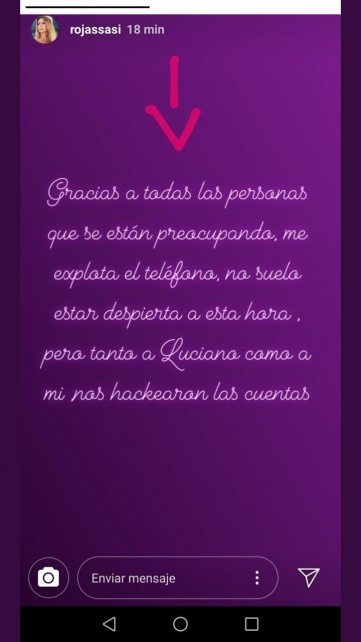 Horas después, llegó la aclaración de Sabrina y la confirmación de que habían hackeado su cuenta y la de su pareja.