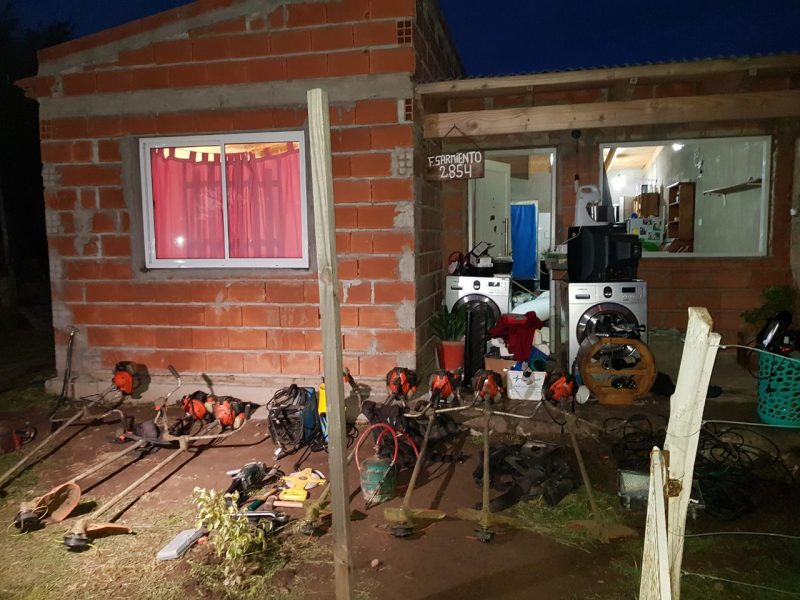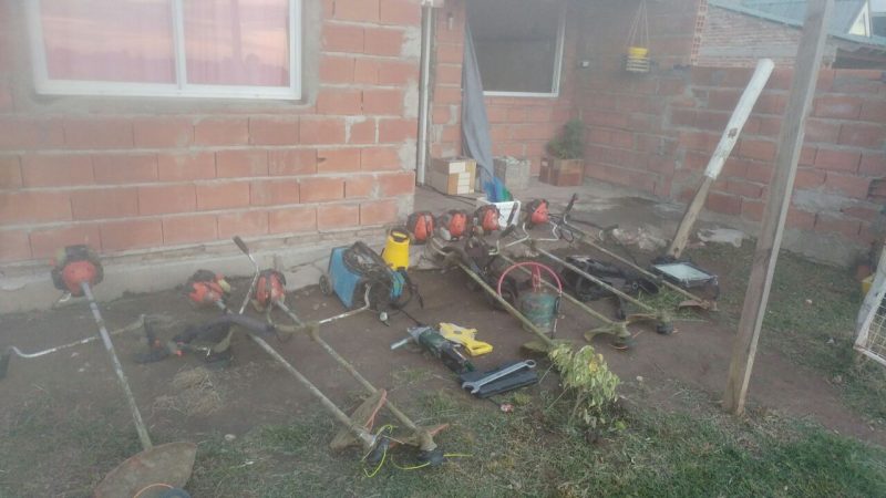 En el lugar, secuestraron las maquinas desmalezadoras y varias herramientas, robadas el pasado día 8 de este mes de la delegación de Villa Harding Green.