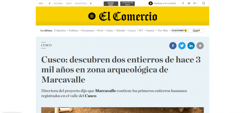 “Estos hallazgos corresponden a la época formativa, es decir, aproximadamente 1.000 años antes de Cristo, lo cual confirma que Marcavalle contiene los primeros entierros humanos registrados en el valle del Cusco, siendo su primer asentamiento”, sostuvo la arqueóloga.