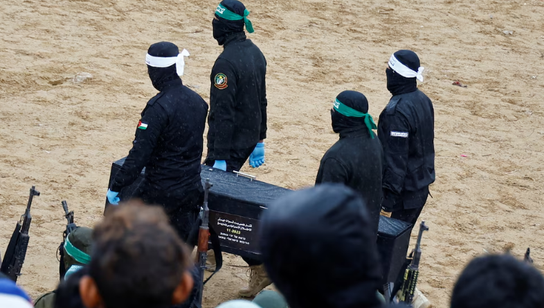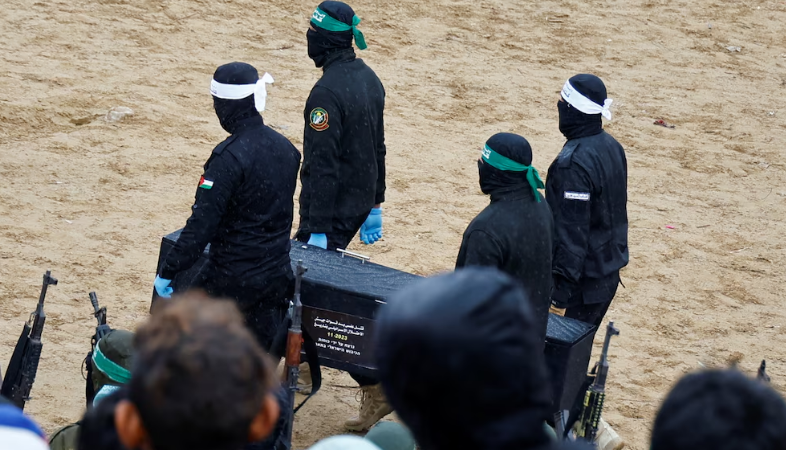 A la entrega del jueves seguirá la devolución de seis rehenes vivos el sábado, a cambio de otros cientos de palestinos, previsiblemente mujeres y menores detenidos por las fuerzas israelíes en Gaza durante la guerra.