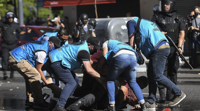 “Es absolutamente falso que las fuerzas policiales y federales de seguridad hayan recibido la orden de reprimir ni de participar de la represión desatada en la zona de la Avenida 9 de julio, ya que es jurisdicción de la policía de la Ciudad Autónoma de Buenos Aires. Es la Policía de la Ciudad de Buenos Aires la que posee la responsabilidad primaria del operativo”, señaló la cartera de Seguridad, a través de un comunicado.