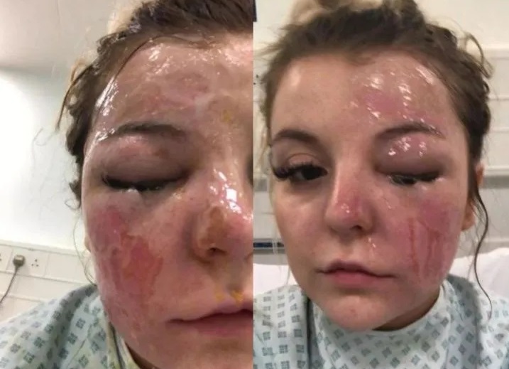 Bethany siguió la receta al pie de la letra e incluso utilizó el microondas un tiempo inferior al indicado a una potencia de 900 Watt. Sin embargo, ni bien abrió la puerta del horno y miró dentro del bol apto para microondas con agua, los huevos explotaron, quemándole el costado derecho del rostro.