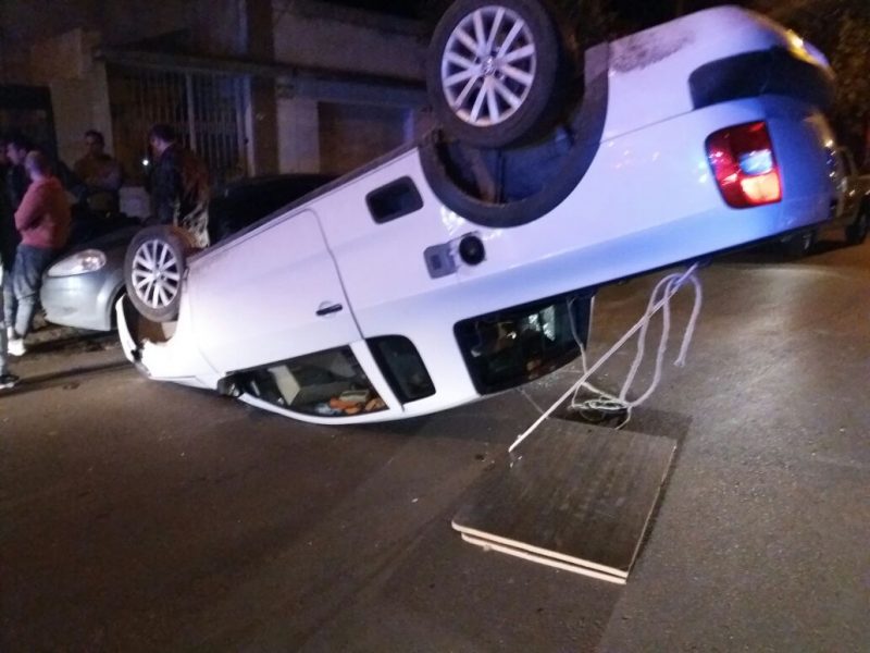 Una camioneta que transitaba en Zapiola al 800 hizo una mala maniobra, colisión contra un auto que estaba estacionado y volcó.
