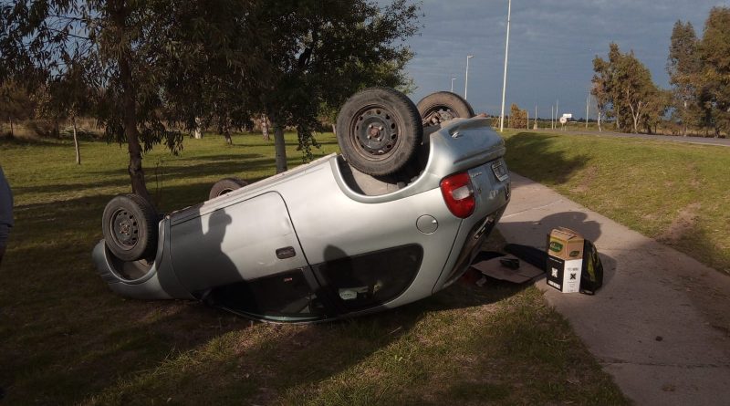 Un auto volcó en el ingreso a General Daniel Cerri luego de realizar de una mala maniobra, sin que haya otro vehículo involucrado.