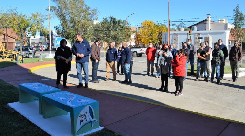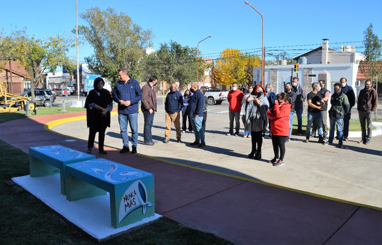 Luego del descubrimiento de la placa, se procedió a inaugurar oficialmente los “Bancos de la Memoria”, una intervención pictórica realizada en dos bancos del playón frontal del distrito. En los mismos se muestra cómo “el emblema del ‘Nunca Más’ toma vuelo en una metamorfosis en donde las palomas, símbolos de paz y libertad, llevan mensajes que invitan al espectador a reflexionar sobre el pasado y el presente de nuestra sociedad”, según comentó el artista Jesús Sedano, creador de la pintura.