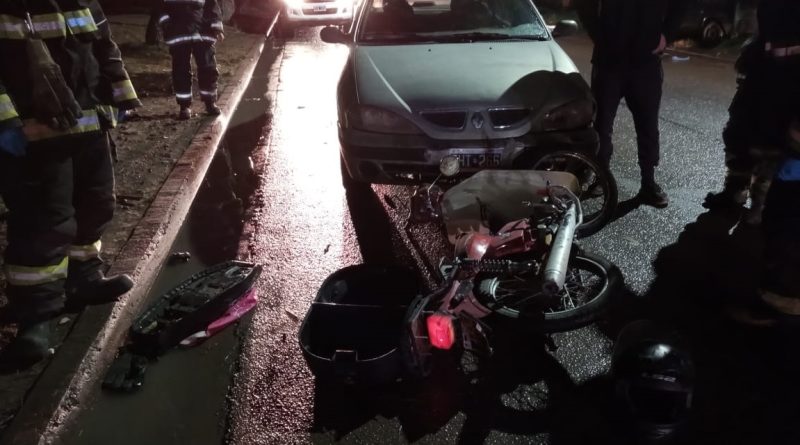 Una Guerrero 110 cc y un Renault Megane colisionaron anoche en Tierra del Fuego al 2300.
