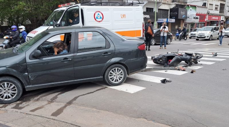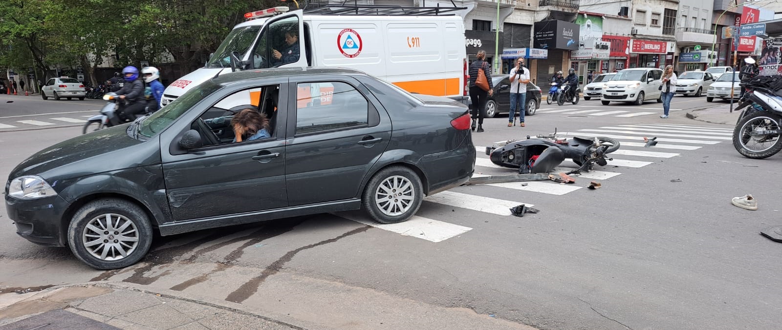 Un auto y una moto chocaron esta mañana en la esquina de Colón y Vieytes.