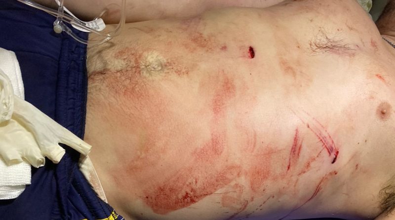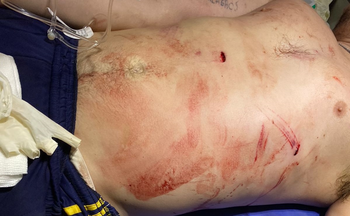 Los profesionales sanitarios asistieron al paciente, el cual presentaba una herida corto punzante en la parte alta del abdomen.