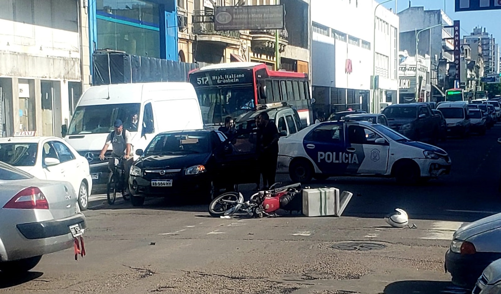 Un incidente vial ocurrió alrededor de las 11 en la esquina de Lavalle y Chiclana cuando chocaron un auto y una moto.