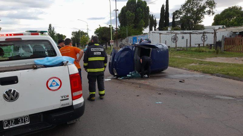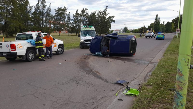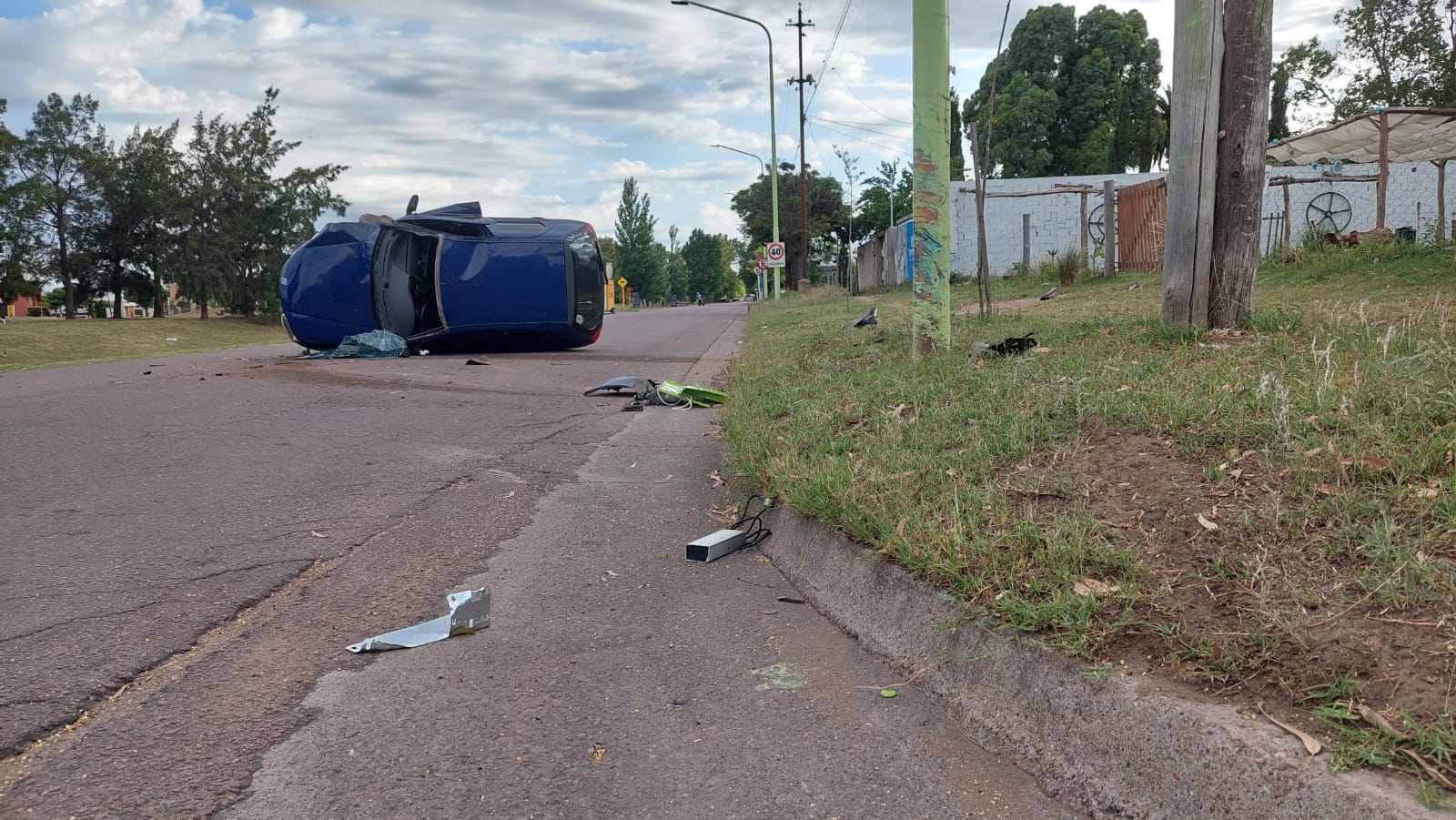 Fuentes oficiales señalaron que antes de volcar el Fiat Palio impactó contra una farola de alumbrado público.