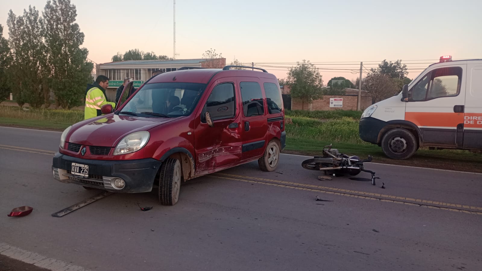 El hecho fue protagonizado por una moto que conducía Bruno Gabriel Berta (18) y una Renault Kangoo que estaba al mando de Romina Cucchinelli (45).
