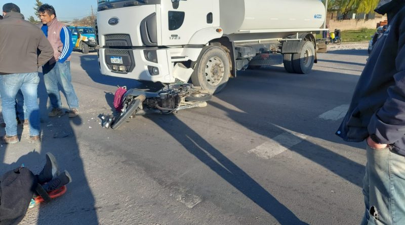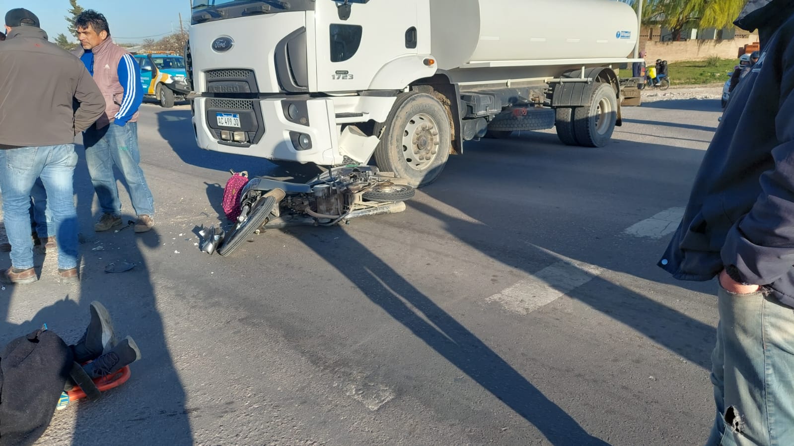 Un hombre de 36 años que transitaba sin casco en una moto sufrió un traumatismo de cráneo al chocar con un camión regador en Indiada y D’Orbigny.