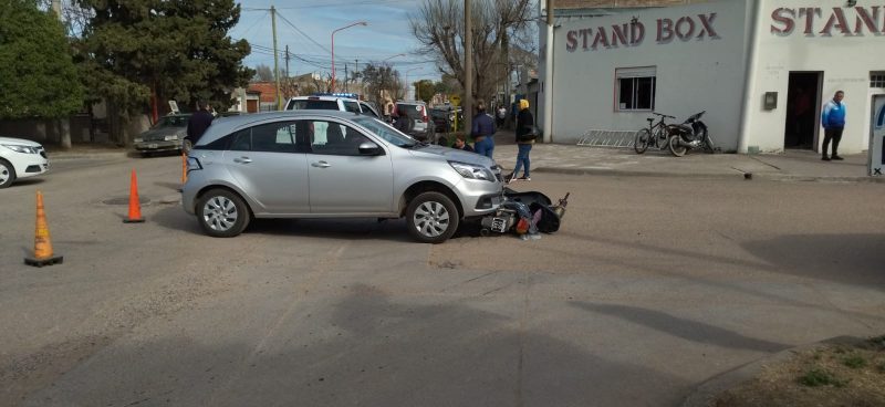 Una motociclista sufrió un traumatismo en el brazo izquierdo en un choque que se produjo este mediodía en Misioneros y Alberdi.