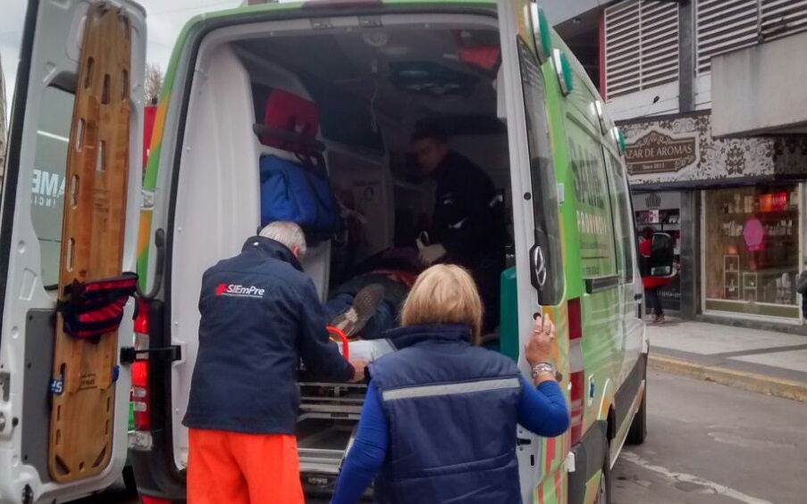 Producto del golpe, la mujer sufrió una posible fractura en la pierna derecha, lo que motivó su traslado por una ambulancia del servicio Siempre.