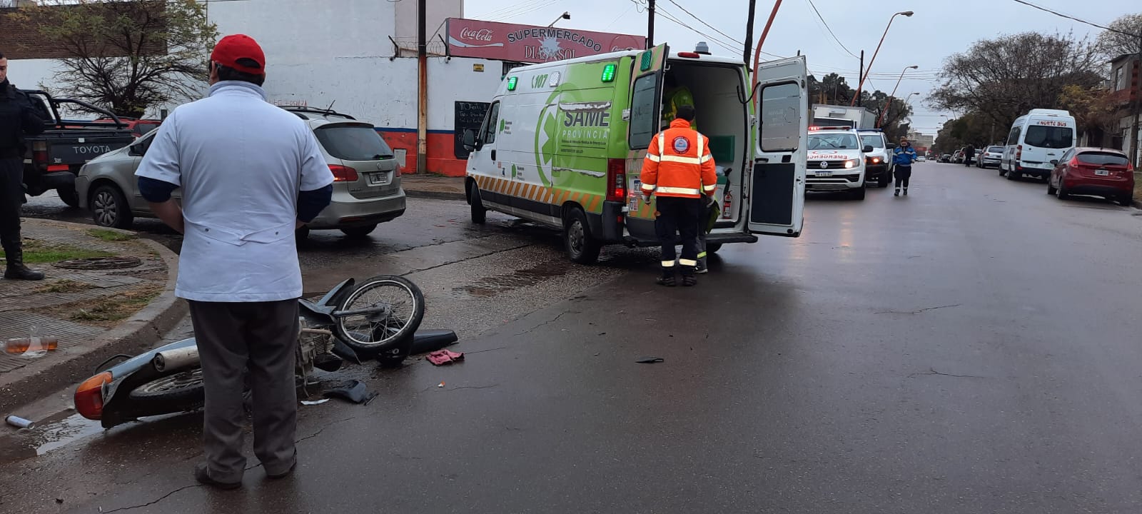 Una mujer que manejaba una moto sufrió lesiones este miércoles luego de chocar con un auto en Rondeau y Bolivia.