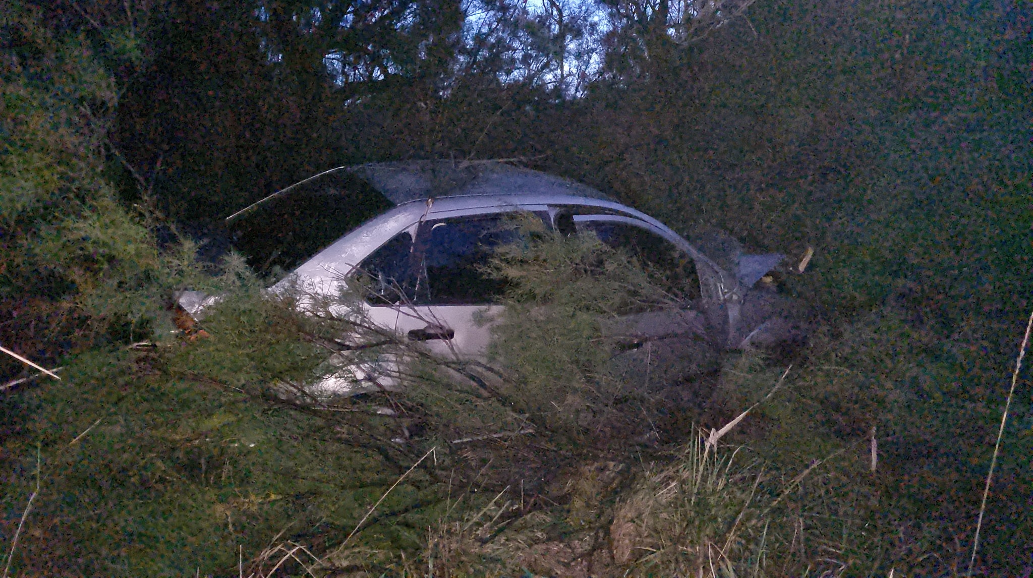 El siniestro ocurrió a las 6 de la mañana cuando una pareja que viajaba desde Chile a Tres Arroyos despistó en plena recta al ser encandilado por otro automóvil y terminó dentro de unos tamariscos.