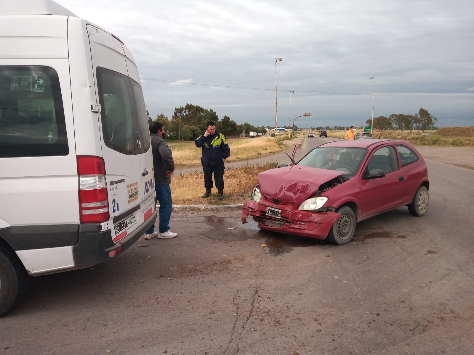 Una combi de la empresa KDH colisionó este lunes con un auto en ruta 33 y avenida Alem, informaron fuentes oficiales.