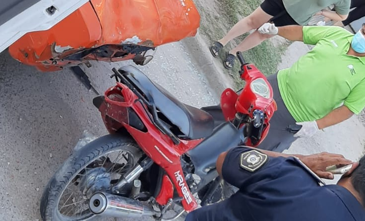 Un choque entre una moto y un auto se produjo este miércoles en la esquina de Gurruchaga y San Martín de General Daniel Cerri.
