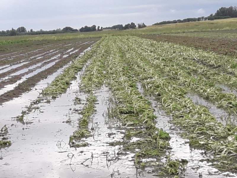 Los productores de ese lugar sufrieron daños en sus cultivos de hortalizas y verduras por la gran cantidad de granizo que rompió.