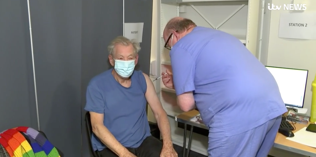⁰Sir @IanMcKellen joins the thousands of people who have now safely received the first dose of the #CovidVaccine. https://t.co/1e3nCAUFcB pic.twitter.com/FFW6jrKqEg— NHS England and NHS Improvement (@NHSEngland) December 16, 2020