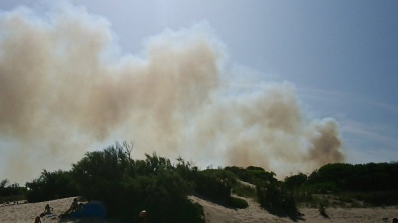 El humo llegó a la playa y varios turistas se acercaron con sus autos a ver qué era lo que sucedía.