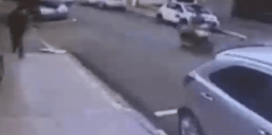 El pequeño se agachó, y el auto que estaba estacionado a su lado arrancó. El vehículo lo pasó por encima y el pequeño se acostó en el suelo, en posición fetal.
