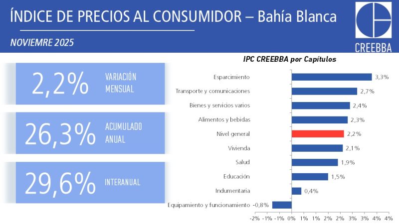 MÁS INFORMACIÓN: La inflación en Bahía Blanca aumentó 2,25% en noviembre, informó el IPC On Line