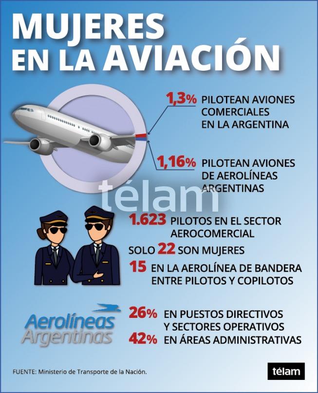 [Infografía] Solo 22 mujeres pilotean aviones comerciales en Argentina