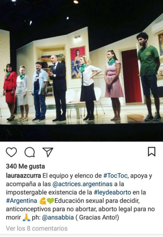En medio de un debate que está presente en la sociedad, y que además se está llevando en el Congreso, la actrices salen al saludo final con pañuelos verdes, en un claro apoyo a la despenalización del aborto. Quienes estaban presenciando la función, señalaron cómo una espectadora enfureció al verlas así y comenzó a gritar que estaban haciendo apología del delito.