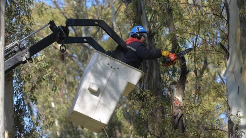 Las tareas abarcan la poda y corte de ramas que interfieren viviendas y el tránsito vehicular.