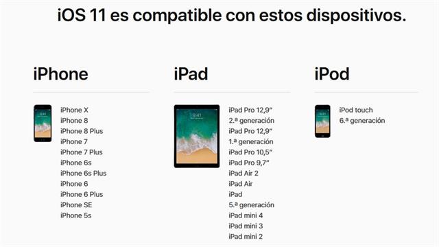 iOS 11 es compatible con iPhone 5s en adelante, por lo que también incluye los modelos SE. La familia iPad queda dentro desde la versión mini 2 en adelante. En el caso de los iPod Touch, los únicos que se actualizarán serán los de sexta generación.