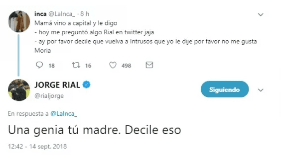 Sin embargo, Moria saltó con lengua karateca y en un desliz de ironía le contestó: “Volvé. A mí me ruegan mis fans que me quede, pero ¡sos el dueño absoluto!. Te hago el aguante baby. Amo todo lo que hago, pero mi programa innovador y transgresor, que en sólo cuatro meses se instaló, es Incorrectas. 18 años ininterrumpidos de Intrusos ameritan tu regreso“.